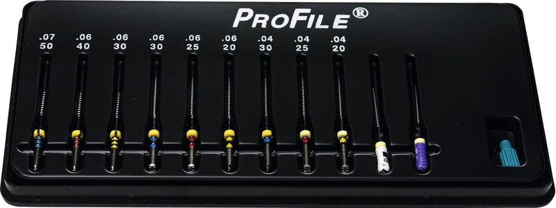 ProFile® ermöglicht eine effiziente maschinelle Aufbereitung und Ausformung des Wurzelkanals. Die vier ProFile®-Instrumententypen wurden speziell für die Crown-Down-Technik entwickelt. Eine konstante Drehzahl im Bereich 150350 U/min. ist erforderlich. Drehmomentbegrenzung wird empfohlen.