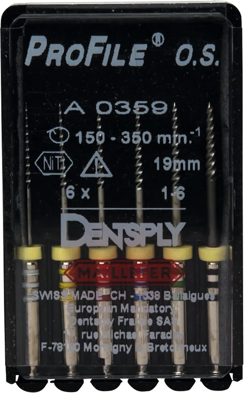 ProFile® ermöglicht eine effiziente maschinelle Aufbereitung und Ausformung des Wurzelkanals. Die vier ProFile®-Instrumententypen wurden speziell für die Crown-Down-Technik entwickelt. Eine konstante Drehzahl im Bereich 150350 U/min. ist erforderlich. Drehmomentbegrenzung wird empfohlen.