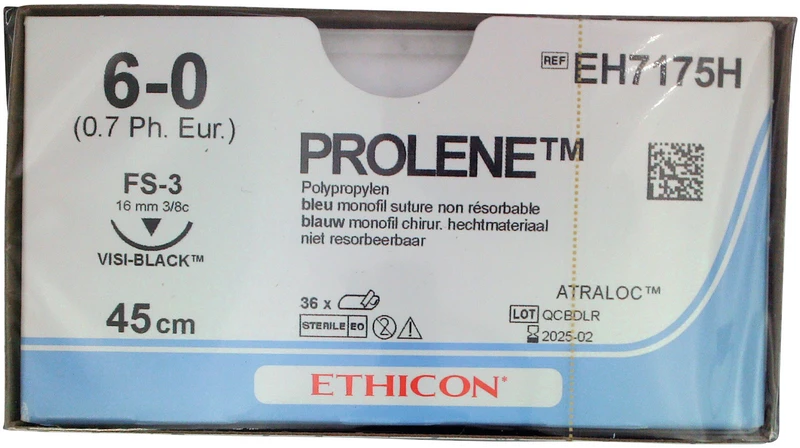 PROLENE [Polypropylen] ist ein synthetisches, nicht resorbierbares, monofiles Nahtmaterial. PROLENE zeichnet sich insbesondere durch die isotaktische Eigenschaft und das inerte Gewebeverhalten des Fadens aus.