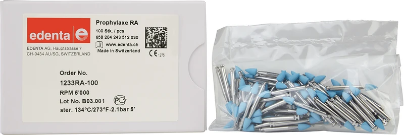 Effiziente und trotzdem schonende Reinigung und Politur natürlicher Zähne. Zur Beseitigung von Zahnbelägen, ohne Polierpaste durch in die Polierer eingearbeitete Abrasivstoffe. Maximale Reinigung und Politur der Zahnoberfläche bei minimaler Abrasion. Minimale Abrasion auf Zahnschmelz und Dentin. Schonung der Zahnhartsubstanz. Zu vernachlässigender Substanzverlust des Zahnes. Anwendung: Mit Kühl - Spray polieren. Ohne Polierpaste