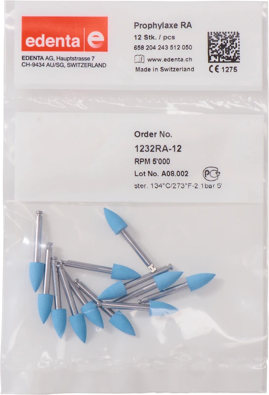 Effiziente und trotzdem schonende Reinigung und Politur natürlicher Zähne. Zur Beseitigung von Zahnbelägen, ohne Polierpaste durch in die Polierer eingearbeitete Abrasivstoffe. Maximale Reinigung und Politur der Zahnoberfläche bei minimaler Abrasion. Minimale Abrasion auf Zahnschmelz und Dentin. Schonung der Zahnhartsubstanz. Zu vernachlässigender Substanzverlust des Zahnes. Anwendung: Mit Kühl - Spray polieren. Ohne Polierpaste