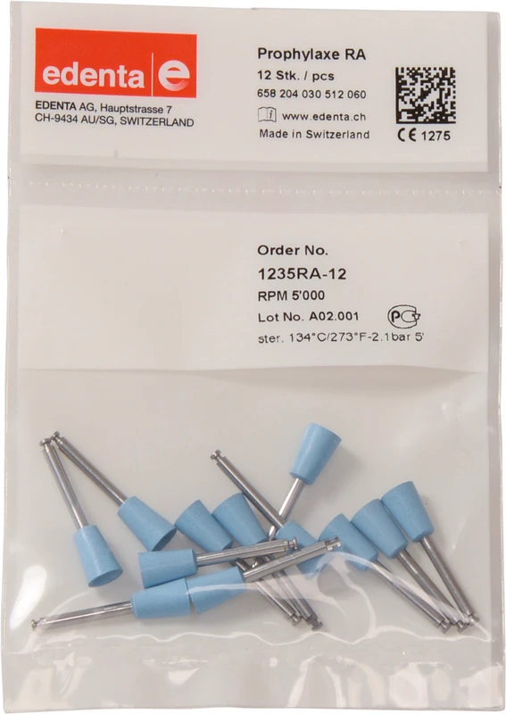 Effiziente und trotzdem schonende Reinigung und Politur natürlicher Zähne. Zur Beseitigung von Zahnbelägen, ohne Polierpaste durch in die Polierer eingearbeitete Abrasivstoffe. Maximale Reinigung und Politur der Zahnoberfläche bei minimaler Abrasion. Minimale Abrasion auf Zahnschmelz und Dentin. Schonung der Zahnhartsubstanz. Zu vernachlässigender Substanzverlust des Zahnes. Anwendung: Mit Kühl - Spray polieren. Ohne Polierpaste