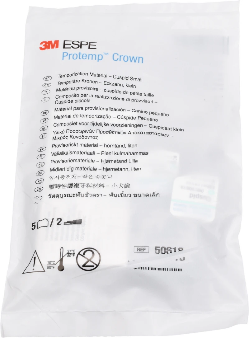 3M Protemp Crown Temporäre Krone ist die weltweit erste vorgefertigte und formbare Krone und ermöglicht die Erstellung einer provisorischen Einzelzahn-Krone in 4 Minuten oder auch weniger. Damit arbeiten Sie bis zu zweimal schneller als mit einem Automix- oder Pulver-Flüssigkeits-System.