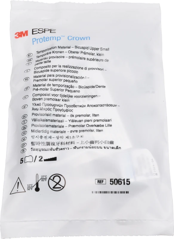 3M Protemp Crown Temporäre Krone ist die weltweit erste vorgefertigte und formbare Krone und ermöglicht die Erstellung einer provisorischen Einzelzahn-Krone in 4 Minuten oder auch weniger. Damit arbeiten Sie bis zu zweimal schneller als mit einem Automix- oder Pulver-Flüssigkeits-System.