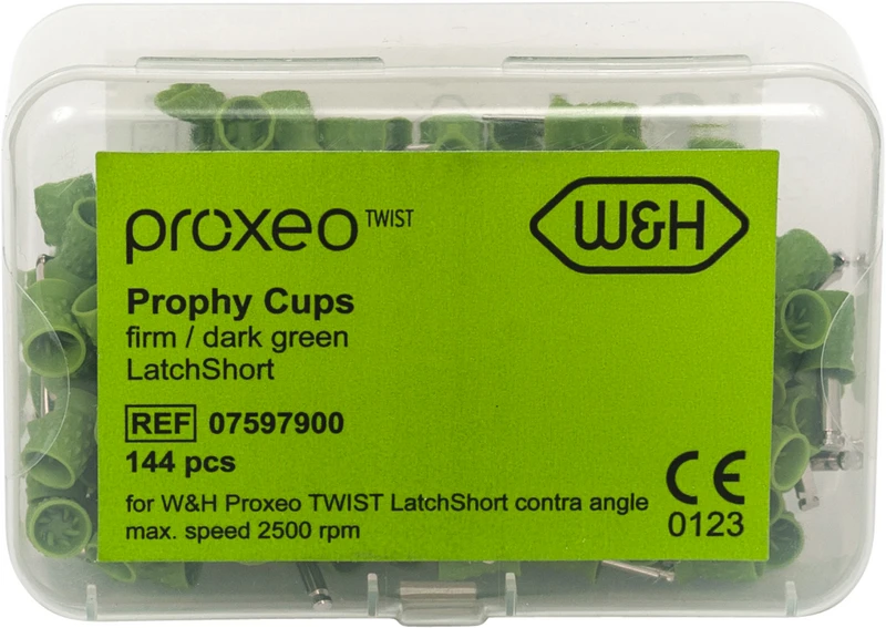 Zur optimalen Entfernung von Biofilm und Verfärbungen stehen Ihnen die neuen Proxeo TWIST LatchShort Prophy-Kelche in verschiedenen Härten sowie Bürsten zur Verfügung. Alle Proxeo TWIST LatchShort Prophy-Kelche haben einen verkürzten Schaft für eine noch geringere Arbeitshöhe.