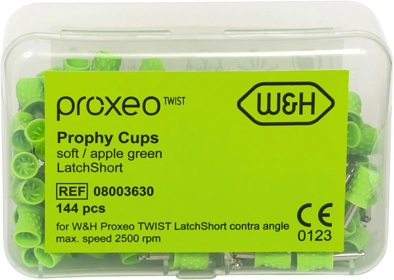 Zur optimalen Entfernung von Biofilm und Verfärbungen stehen Ihnen die neuen Proxeo TWIST LatchShort Prophy-Kelche in verschiedenen Härten sowie Bürsten zur Verfügung. Alle Proxeo TWIST LatchShort Prophy-Kelche haben einen verkürzten Schaft für eine noch geringere Arbeitshöhe.