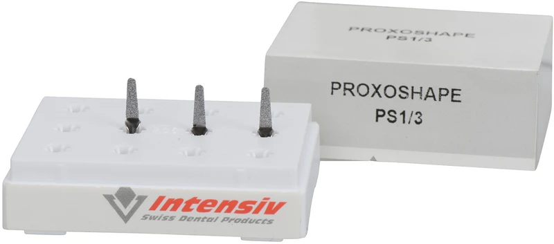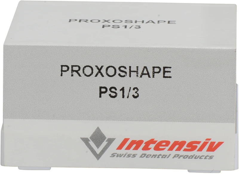 Oszillierende diamantierte Feilen für den Abtrag von Überschüssen und Ausarbeitung von restaurierten Approximalflächen. Perfekt adaptierte und polierte proximale Füllungsflächen bzw. Kronenränder sind die Voraussetzung für die Gesunderhaltung des Parodonts und die Verhinderung von Sekundärkaries. Proxoshape erfüllt die Anforderungen an eine korrekte Ausarbeitung der Füllungsflächen und -ränder und bereitet sie auf die Hochglanzpolitur vor. Intensiv Proxoshape