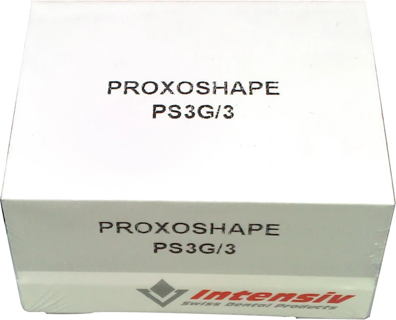 Oszillierende diamantierte Feilen für den Abtrag von Überschüssen und Ausarbeitung von restaurierten Approximalflächen. Perfekt adaptierte und polierte proximale Füllungsflächen bzw. Kronenränder sind die Voraussetzung für die Gesunderhaltung des Parodonts und die Verhinderung von Sekundärkaries. Proxoshape erfüllt die Anforderungen an eine korrekte Ausarbeitung der Füllungsflächen und -ränder und bereitet sie auf die Hochglanzpolitur vor. Intensiv Proxoshape