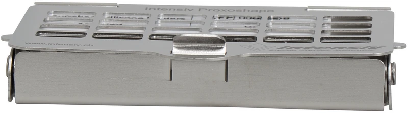Kompaktes Edelstahl-Tray mit farbigen Silikonhaltern für die Bereitstellung der oszillierenden Intensiv Proxoshape Feilen.Während der Behandlung, in der oszillierende Feilen verwendet werden, ist es von grosser Bedeutung einen sicheren, hygienisch einwandfreien, sterilisierbaren Halter zur Verfügung zu haben und der zudem in der Zusammenstellung individuell gestaltet werden kann. Die Identifizierung der zu benutzenden Feilen muss eindeutig und unmittelbar möglich sein. Die Aufbewahrung der Feilen muss nach der Reinigung, Desinfektion und Sterilisation in absoluter Sicherheit erfolgen.