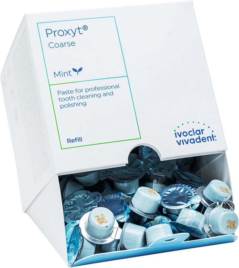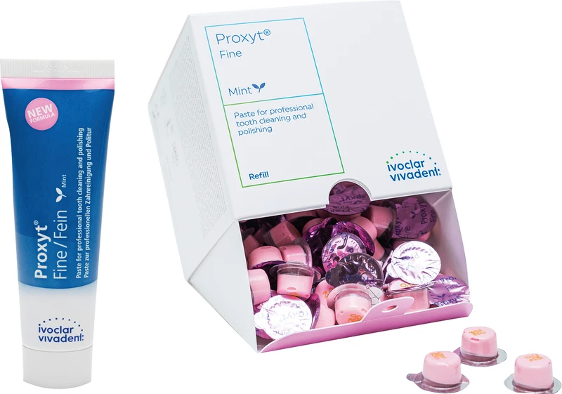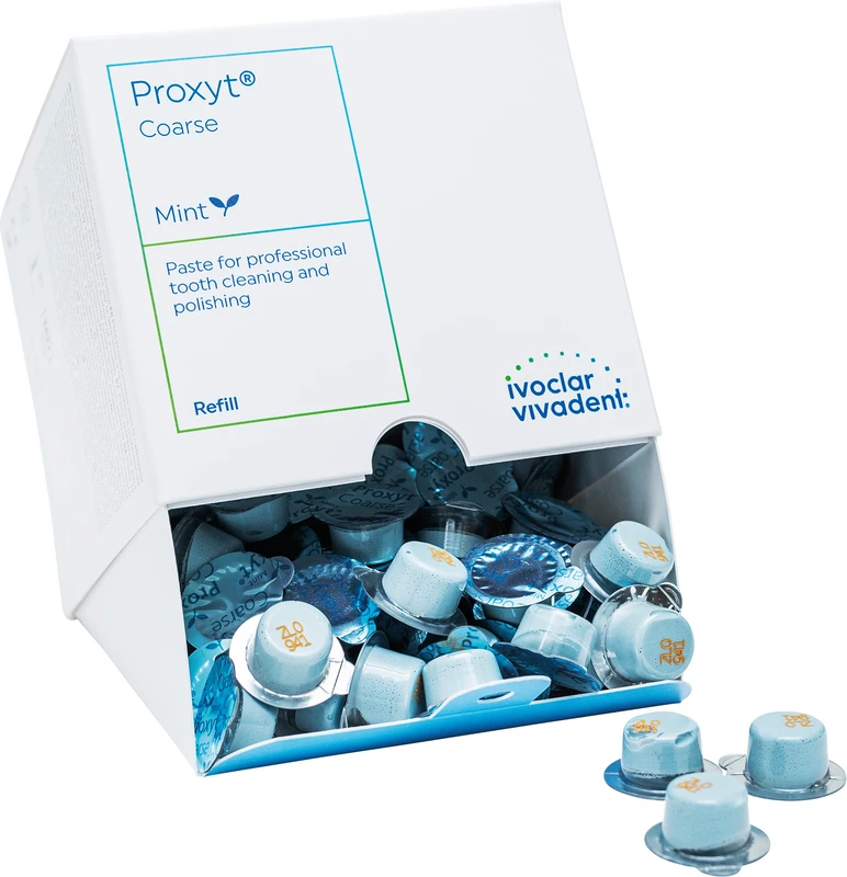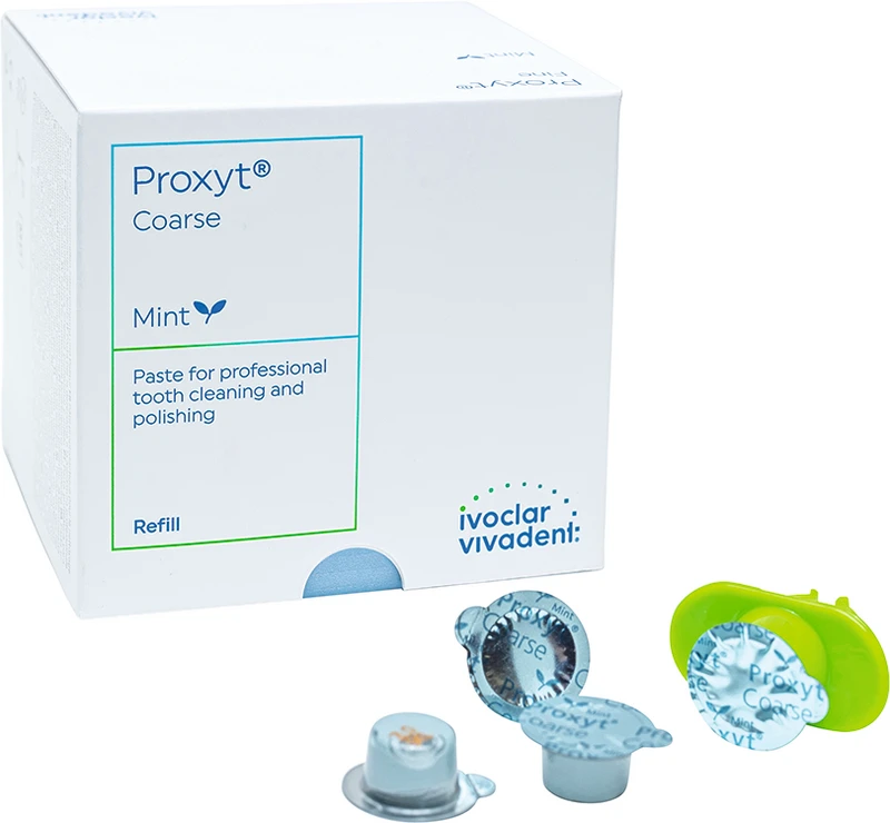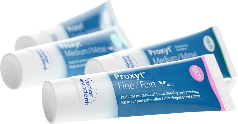 Proxyt® Das Prophylaxe-Pasten-System zur bedarfsorientierten professionellen Reinigung und Politur der Zähne, Restaurationen und Implantatversorgungen. Das enthaltene Xylit hemmt das Wachstum Karies verursachender Bakterien.