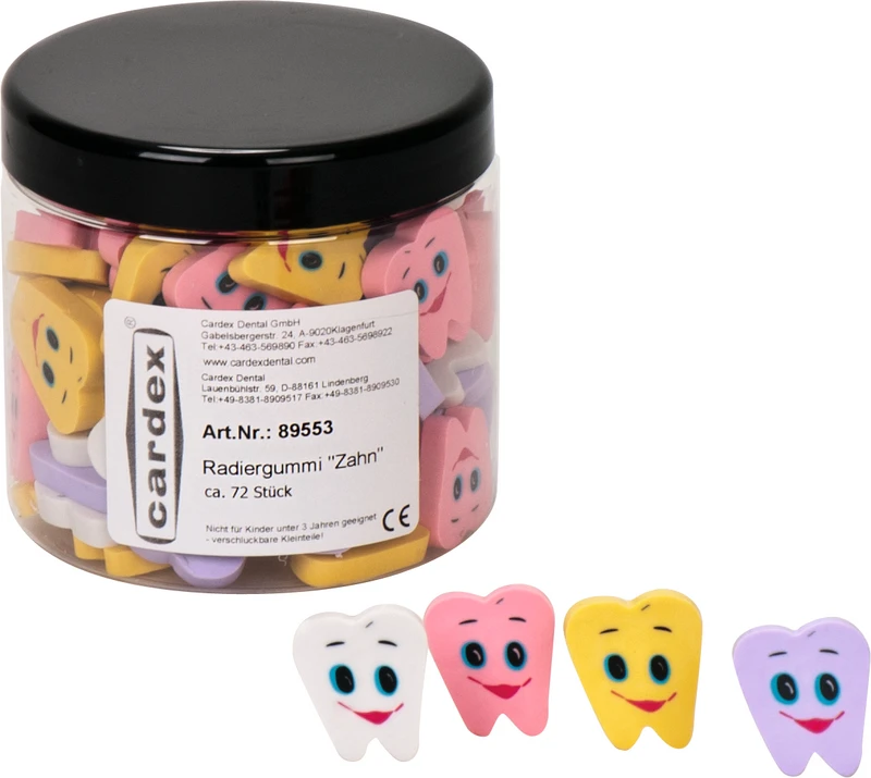 Produktinformationen "Radiergummi Zahn Dose 72 Stück in 4 unterschiedlichen Farben"