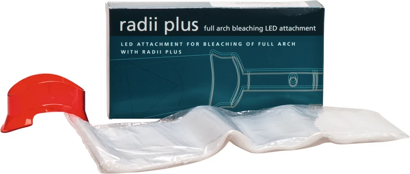 Der radii Plus Bleach Arch Aufsatz ist ein kleiner und handlicher Zusatz zur Radii Plus. Er ist für die meisten Bleachingsysteme geeignet und zeichnet sich durch geringe Wärmeentwicklung und keine UV-Emissionen aus. Der Radii Plus Bleaching Aufsatz kann auch in der Kieferorthopädie eingesetzt werden. *Für Radi plus mit Seriennummer bis 3-34828.