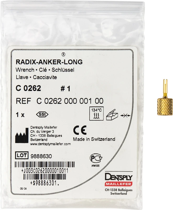 Der RADIX-ANKER-LONG aus Titan verfügt über die gleichen Stiftdurchmesser und längen wie der RADIX-ANKER-STANDARD. Jedoch hat der Ankerkopf einen verringerten Außendurchmesser, einen vergrößerten Innendurchmesser, eine geringere Ausladung der Lamellen und ist um ein massives Zwischenteil verlängert. Der RADIX-ANKER-LONG eignet sich speziell für hochbelastete Kronenaufbauten. Ein Teil des Instrumentariums ist mit dem des RADIX-ANKER-STANDARD identisch (Kanalerweiterer, Spiralbohrer).