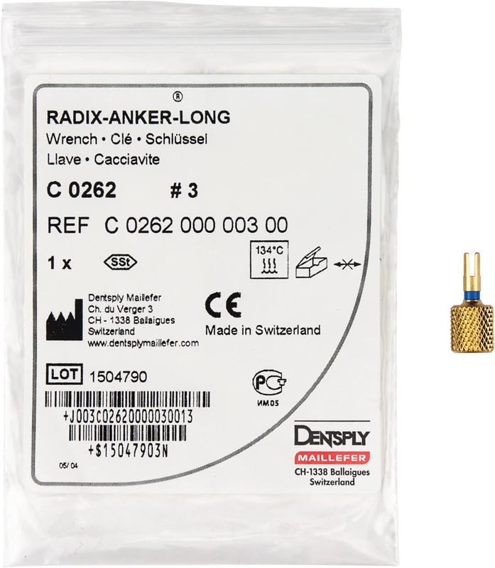 Der RADIX-ANKER-LONG aus Titan verfügt über die gleichen Stiftdurchmesser und längen wie der RADIX-ANKER-STANDARD. Jedoch hat der Ankerkopf einen verringerten Außendurchmesser, einen vergrößerten Innendurchmesser, eine geringere Ausladung der Lamellen und ist um ein massives Zwischenteil verlängert. Der RADIX-ANKER-LONG eignet sich speziell für hochbelastete Kronenaufbauten. Ein Teil des Instrumentariums ist mit dem des RADIX-ANKER-STANDARD identisch (Kanalerweiterer, Spiralbohrer).