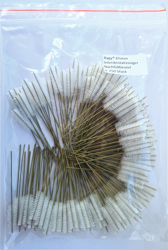 ragy® Interdentalbürsten sind ein Hilfsmittel zur effektiven Pflege der Zahnzwischenräume. Durch eine Kunststoffbeschichtung der Spirale wird der galvanische Effekt, z. B. bei Amalgamfüllungen, verhindert.