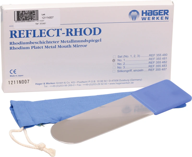Rhodiumbeschichteter Metallmundspiegel, ideal für verzerrungsfreie intraorale Aufnahmen, aufwendige Rhodiumbeschichtung. Robust, langlebig und sterilisierbar. Mit abnehmbaren Silikongriff. Autoklavierbar im beiliegenden Stoffbeutel.
