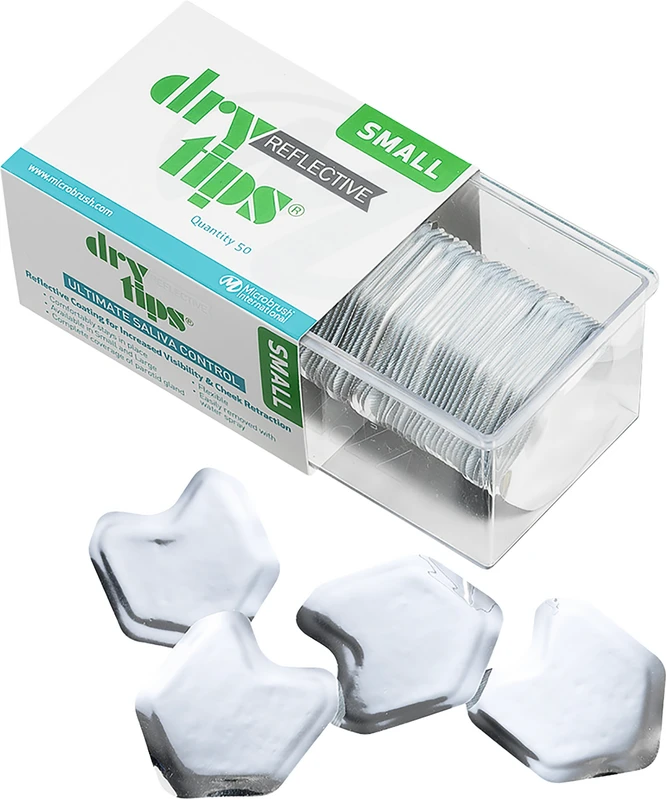 Original Reflective DryTips® Parotispflaster/Speichelabsorber mit reflektierender Oberfläche für bessere Sichtverhältnisse im Arbeitsfeld. Vollständige Abdeckung des Ohrspeicheldrüsen-Kanals. Nimmt Flüssigkeit direkt dort auf, wo sie entsteht. Ideal für: