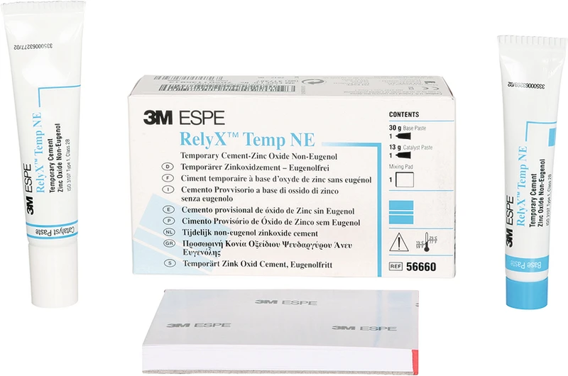 3M RelyX Temp NE Temporärer Zinkoxidzement Eugenolfrei ist universell einsetzbar, sowohl bei anschließend konventioneller als auch adhäsiver Befestigung.