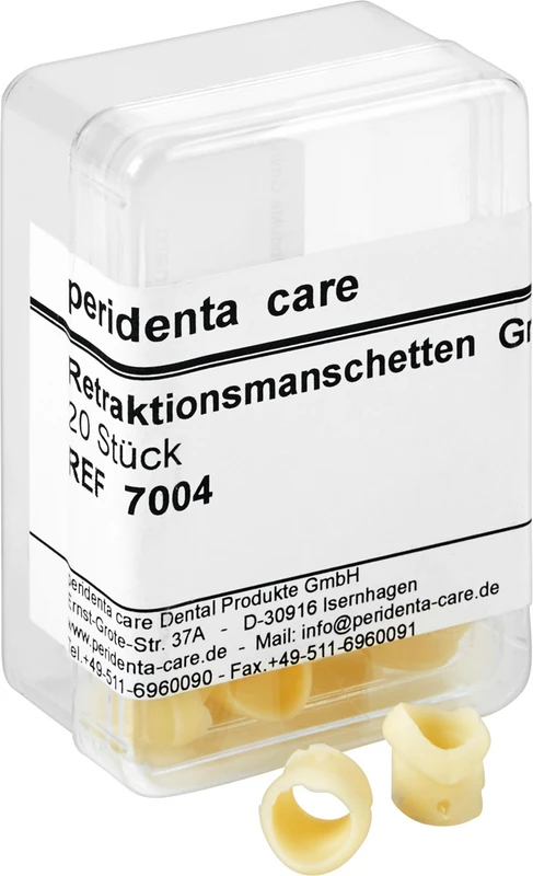 Retraktionsmanschetten sind elastische Ringe mit keilförmiger Randwulst zur Freilegung der Präparationsgrenze vor der Abformung.