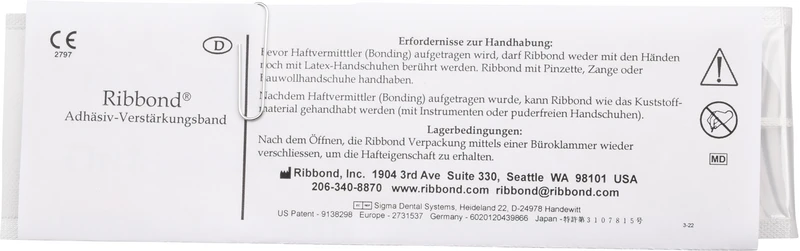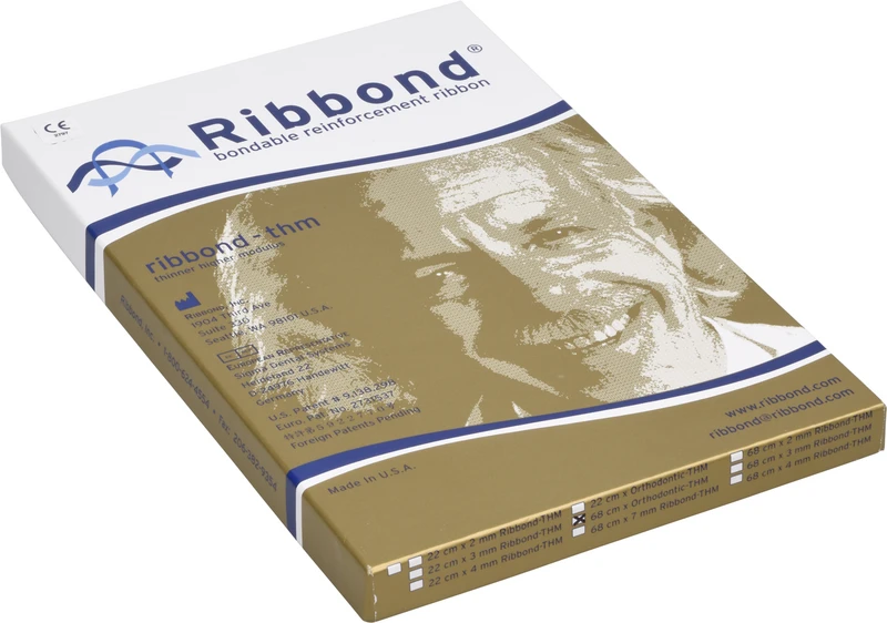 Bei der Ribbond-Version THM (Thinner, Higher Modulus = dünnere und höhere Fadenanzahl) werden noch feinere Fasern in einer höheren Konzentration verwendet als bei Ribbond regular. Dadurch ist dieses Faserband leichter anzupassen und gibt Ihnen die Möglichkeit, dünnere und glattere Schienen, Brücken und andere Applikationen herzustellen, ohne dabei auf die gewohnte Festigkeit verzichten zu müssen.