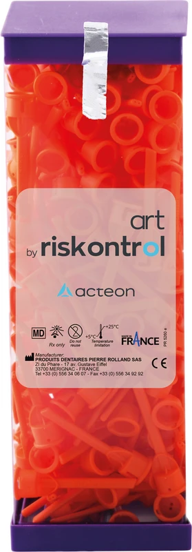 Einwegansätze mit Duft, flexibel, auswechselbar, biegsam ohne Memoryeffekt. In die Behandlungseinheit eingebaute Multifunktionsspritzen können im Gegensatz zu Turbinen weder im Autoklav noch auf eine andere Weise sterilisiert werden. RISKONTROL® verhindert das Risiko der direkten Kontamination oder der Kreuzkontamination. Mit Adapter aus eloxiertem Aluminium an allen gängigen Behandlungseinheiten zu verwenden.
