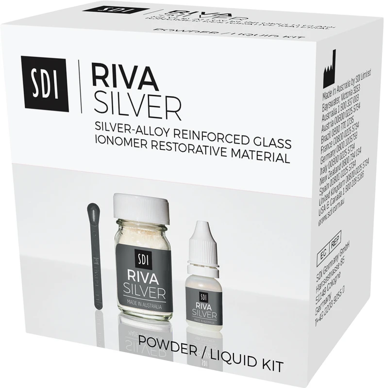 riva silver ist ein stopfbares, Fluoride freisetzendes, mit Silber verstärktes Glasionomer Füllungsmaterial, hauptsächlich für kleine Restaurationen der Klassen I und II, Milchzähne, geriatrische Zähne und Kernaufbauten.