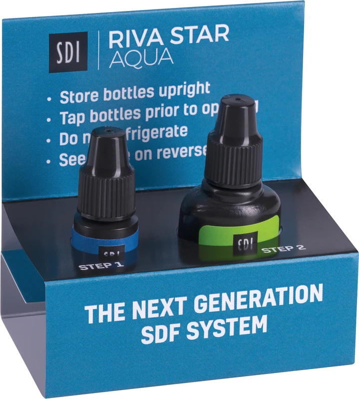 SDI hat sein SDF-System weiterentwickelt, und zwar zu RIVA STAR AQUA, einer wasserbasierten Silberfluorid-Lösung der neuesten Generation, die wie SDF kariöse Läsionen wirksam arretiert und den Patienten weitere Vorteile bietet. Ähnlich wie Riva Star (SDF) ist RIVA STAR AQUA (AgF) ein patentiertes, nicht- invasives 2-Schritt-System zur Desensibilisierung von Zähnen mit wenigen Tropfen. RIVA STAR AQUA ist eine wässrige Silberfluorid-Lösung ohne Ammoniak.