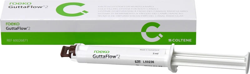 GuttaFlow® 2 ist die erste nicht erwärmte, fließfähige Guttapercha, die nicht schrumpft, sondern leicht expandiert. Die durch die leichte Expansion des Material bedingte Retention führt zu einem sehr guten Randschluss. GuttaFlow® 2 weist zusätzlich eine sehr gute Haftung sowohl zur Guttapercha-Spitze (Masterpoint) als auch Dentinwand auf.