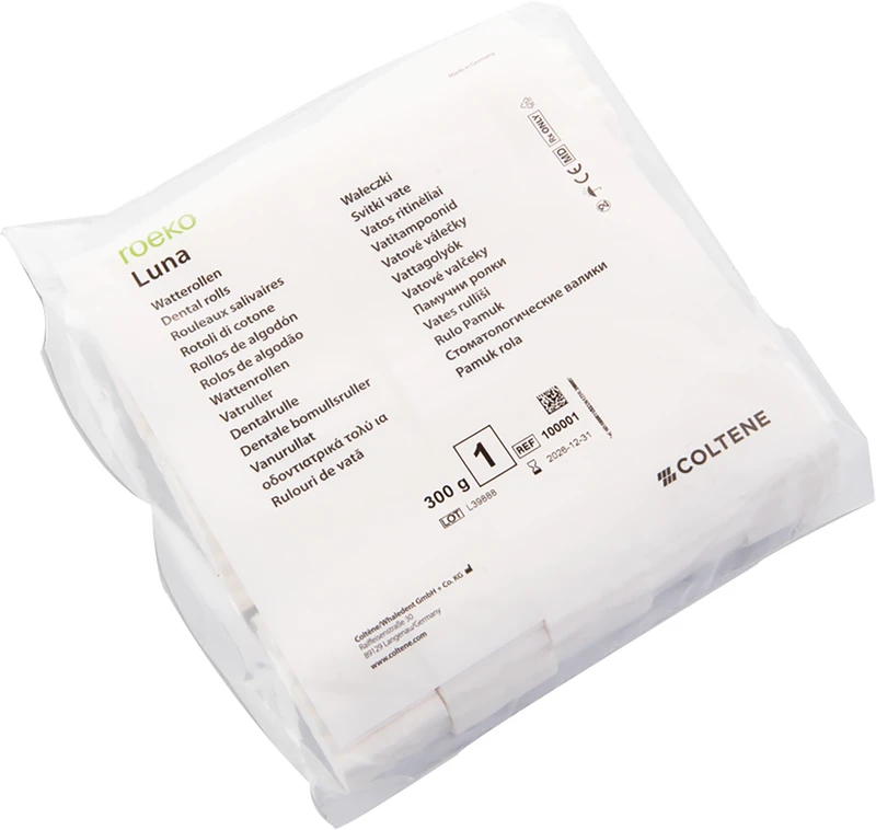 ROEKO Luna die bewährte Zahnrolle. Luna ist der Klassiker unter den Zahnwatterollen, erprobt und bewährt seit Jahrzehnten. Luna überzeugt durch ihre Fähigkeit, Wangen, Lippen und Zunge effektiv abzuhalten und das Behandlungsfeld zugänglich und feuchtigkeitsarm zu halten. Sie nimmt kontinuierlich Feuchtigkeit auf und hält diese auch unter Druck. Luna ist in 4 verschiedenen Größen erhältlich.