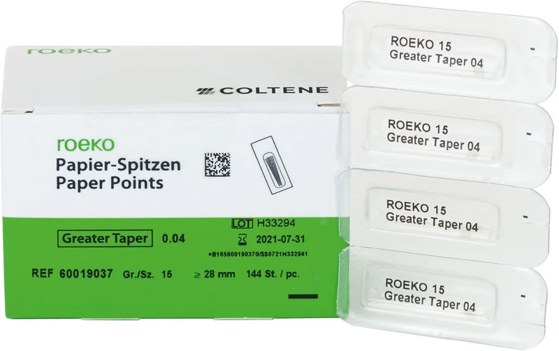 Produktinformationen "roeko Papier-Spitzen Greater Taper Cellpackung 144 Stück Taper.04 ISO 015"