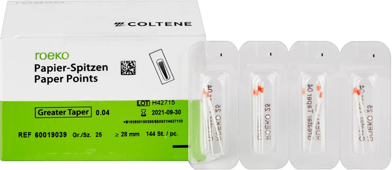 Produktinformationen "roeko Papier-Spitzen Greater Taper Cellpackung 144 Stück Taper.04 ISO 025"