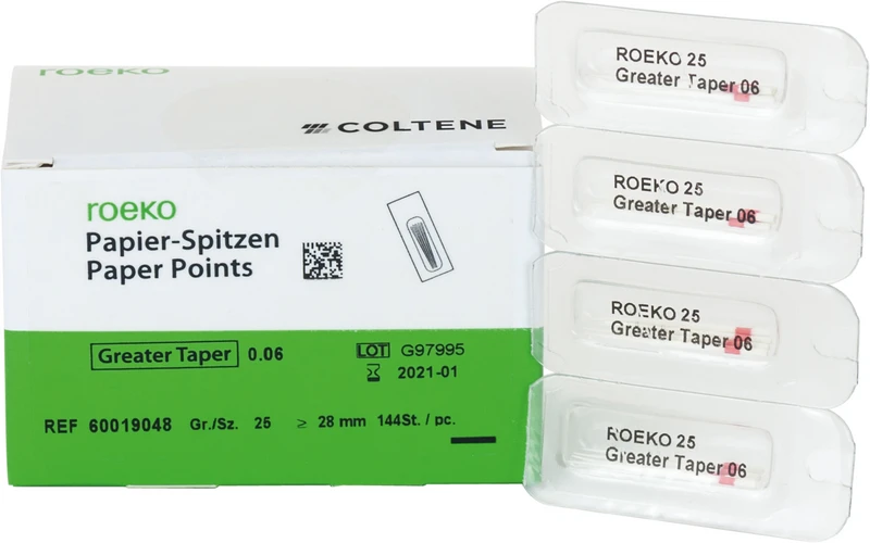 Produktinformationen "roeko Papier-Spitzen Greater Taper Cellpackung 144 Stück Taper.06 ISO 025"