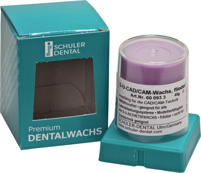 Reflektionsfrei, fräsbar, extrem opak. Geeignet für alle Laserabtastungssysteme. Für Modellation und zum Ausblocken. Modellierfähigkeit wie S-U-ÄSTHETIKWACHS (nicht für Gusszwecke geeignet). Geringe Kontraktion. S-U-CAD/CAM Wachs grau ist besonders geeignet für Streifenlichtscanner, aufgrund neutraler Farbgebung.