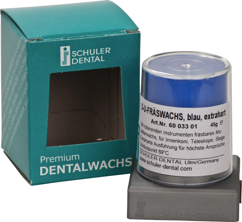 Bei diesem Wachs handelt es sich um eine härtere Ausführung des bewährten S-U-Modellierwachs blau. Es lässt sich sehr gut mit elektrisch beheizten Instrumenten, beispielsweise bei der Herstellung von Innenkoni, bearbeiten. Aufgrund der Härte ist dieses Wachs ebenfalls ideal für den Einsatz mit rotierenden Instrumenten. Erstarrungspunkt 63 °C.