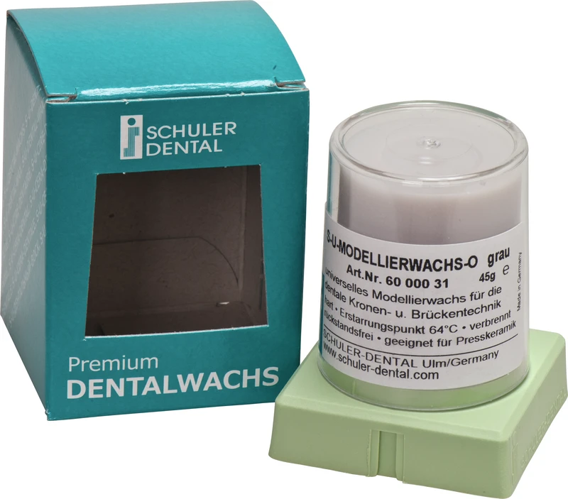 Für die Kauflächengestaltung, zum Ausmodellieren von Kronenwandungen und Aufbauen von Brückengliedern für Kunstoff- und Keramikverblendungen. Das S-U-MODELLIERWACHS-O, grau ist rein organisch, verbrennt rückstandslos, und ist daher auch für die Vollkeramik geeignet. Das S-U-MODELLIERWACHS-A, grau dagegen ist leicht opak und hat ebenfalls hervorragende Modelliereigenschaften.