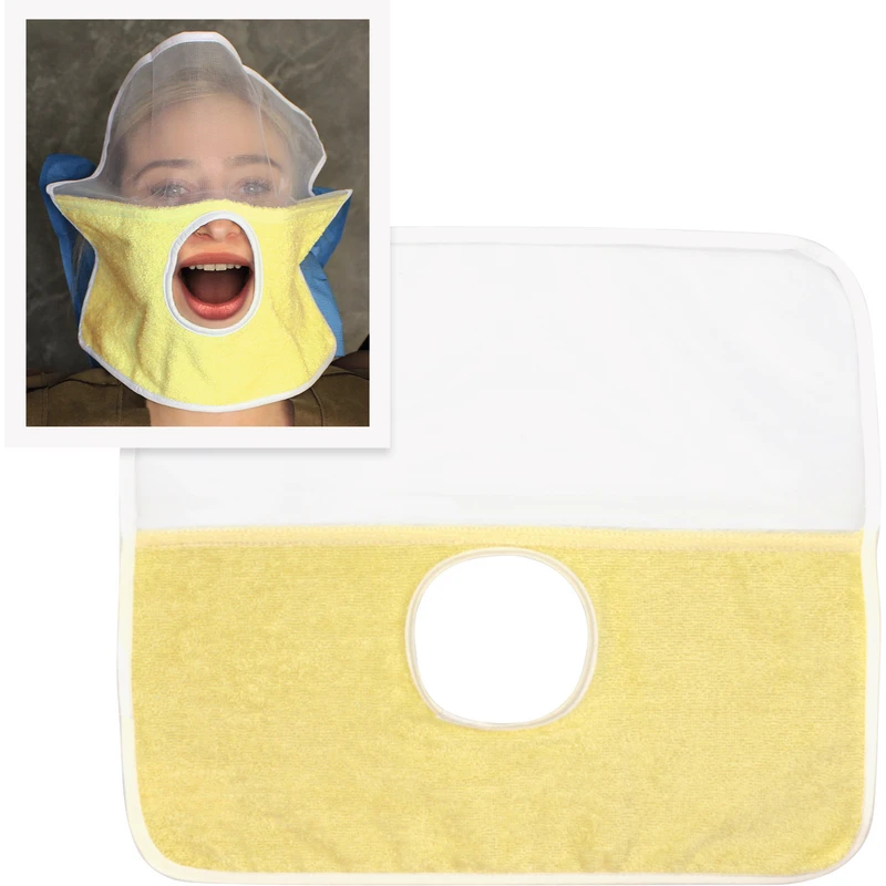 SafeDrape Gesichtstücher schützen Ihre Patienten bei der professionellen Zahnreinigung. Ob Spraynebel oder Pulverstaub, das Gesicht sowie der Halsbereich werden während der Behandlung abgedeckt und sicher geschützt. Das Netzgewebe im oberen Teil erlaubt stets freie Sicht. Diese zusätzliche Schutzmaßnahme ist äußerst angenehm und komfortabel für den Patienten. Besonders weibliche Patienten schätzen es, wenn das Make Up auch nach der Behandlung noch gut erhalten ist. Erhältlich als besonders hygienisches Einweg- oder nachhaltiges, waschbares Mehrwegprodukt.
