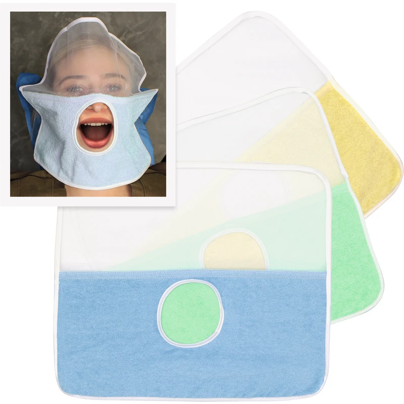 SafeDrape Gesichtstücher schützen Ihre Patienten bei der professionellen Zahnreinigung. Ob Spraynebel oder Pulverstaub, das Gesicht sowie der Halsbereich werden während der Behandlung abgedeckt und sicher geschützt. Das Netzgewebe im oberen Teil erlaubt stets freie Sicht. Diese zusätzliche Schutzmaßnahme ist äußerst angenehm und komfortabel für den Patienten. Besonders weibliche Patienten schätzen es, wenn das Make Up auch nach der Behandlung noch gut erhalten ist. Erhältlich als besonders hygienisches Einweg- oder nachhaltiges, waschbares Mehrwegprodukt.