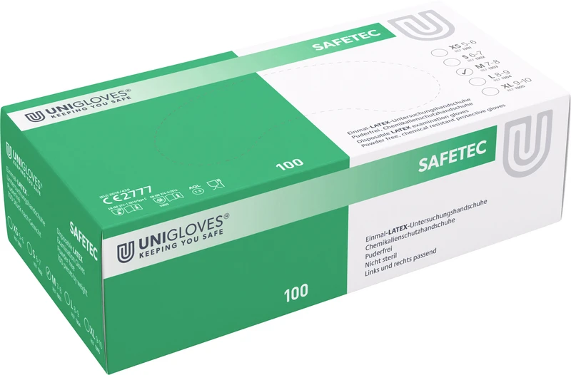 SAFETEC® Packung 100 Stück puderfrei, naturlatex, M