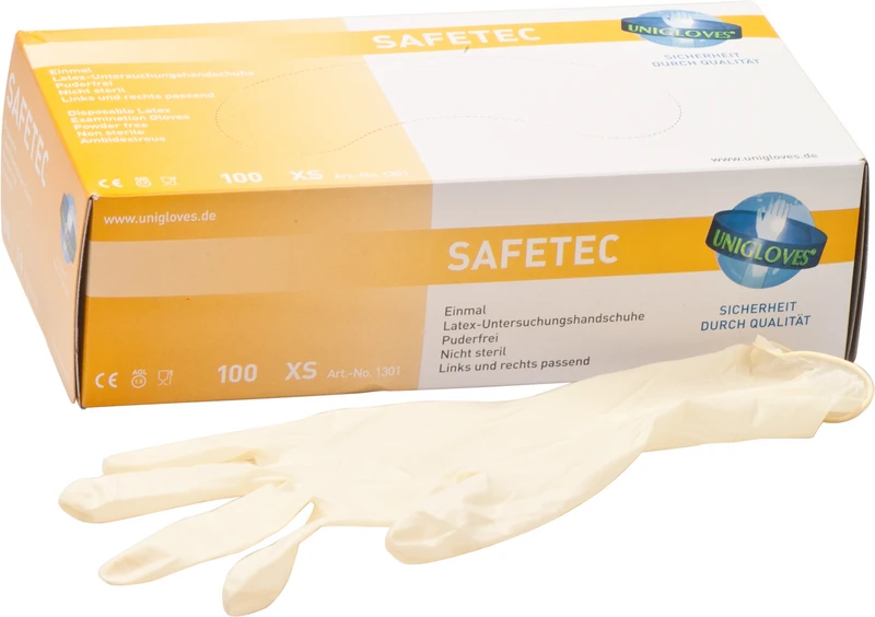 Puderfreie SAFETEC® Latexhandschuhe mit Rollrand.