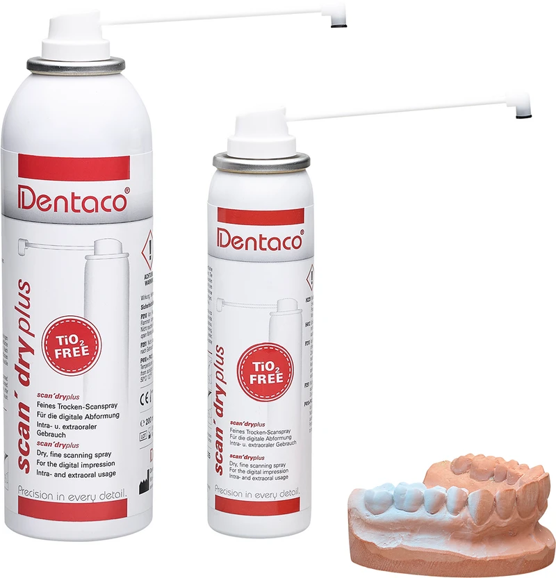 Trockenes Scanningspray, intraoral einsetzbar, trocknet unmittelbar beim Aufsprühen, für eine extrem feine Puderschicht. Leicht und schnell aufzutragen und zu entfernen. Kontrastfarbe. Ökonomische, gut handhabbare Dosengröße. Hygienische Wechselkanülen.