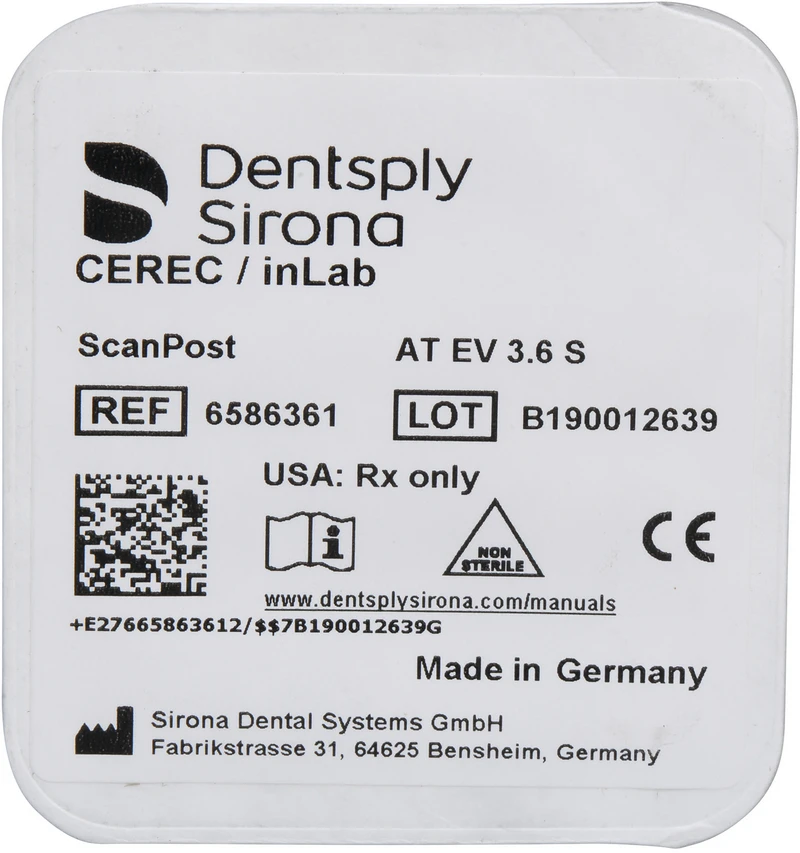 ScanPost ist zusammen mit einem geeignetem Scanbody ein Hilfsmittel zur intraoralen optischen Erfassung der Implantatlage. Eine konventionelle Abformung mittels Abformpfosten zur Übertragung in ein Gipsmodell wird damit überflüssig. ScanPost ist für verschiedene Implantatsysteme- und durchmesser erhältlich und kann bis zu 50 Mal angewandt werden. Je nach eingesetztem Kamerasystem sind separat erhältliche Scanbodies zu verwenden (Scanbodies für Omnicam oder Scanbodies for Bluecam). Für die definitive Versorgung ist eine TiBase mit der gleichen Namensextension zu verwenden.
