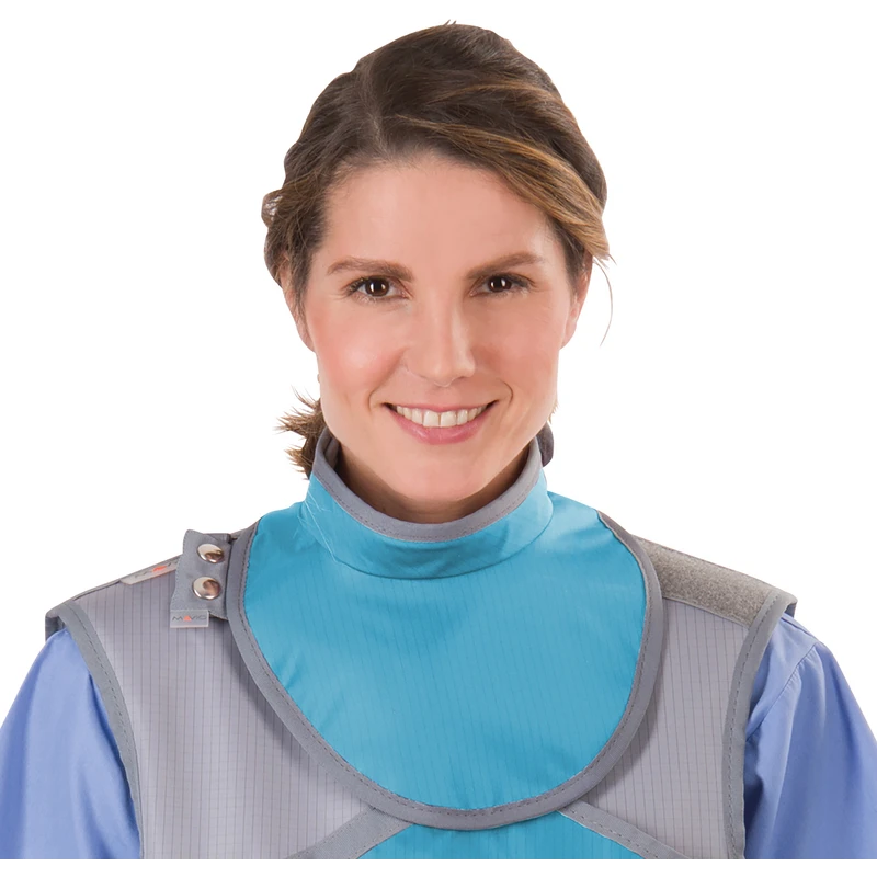 Die Schilddrüse ist ein strahlenempfindliches und daher besonders schutzwürdiges Organ des menschlichen Körpers. Das Tragen eines entsprechenden Schutzes bei dosisintensiven Untersuchungen sollte somit immer eine Selbstverständlichkeit sein. Unsere Variante des Schilddrüsen-Sternumschutzes zeichnet sich durch erstklassige Schnittführung und beste Passform aus, selbstverständlich unter Berücksichtigung aller Strahlenschutzaspekte. Standardmäßig mit fest angenähtem Klettverschluss im Nacken ausgestattet, ist der Schilddrüsen-Sternumschutz optional auch mit austauschbarem Klettverschluss oder mit praktischem Magnetverschluss erhältlich.