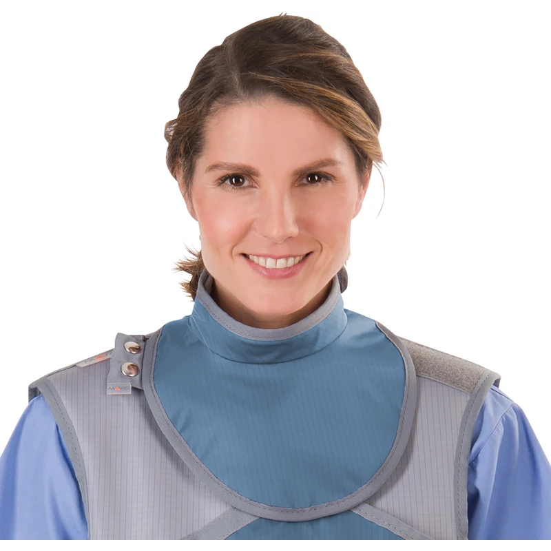 Die Schilddrüse ist ein strahlenempfindliches und daher besonders schutzwürdiges Organ des menschlichen Körpers. Das Tragen eines entsprechenden Schutzes bei dosisintensiven Untersuchungen sollte somit immer eine Selbstverständlichkeit sein. Unsere Variante des Schilddrüsen-Sternumschutzes zeichnet sich durch erstklassige Schnittführung und beste Passform aus, selbstverständlich unter Berücksichtigung aller Strahlenschutzaspekte. Standardmäßig mit fest angenähtem Klettverschluss im Nacken ausgestattet, ist der Schilddrüsen-Sternumschutz optional auch mit austauschbarem Klettverschluss oder mit praktischem Magnetverschluss erhältlich.