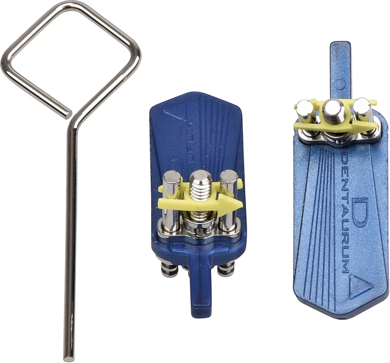 Mit breitem Dehnschraubenhalter, skelettiert. Führungsstift: U-förmig, abgewinkelt nach unten.