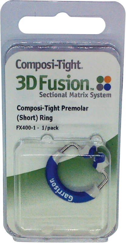 Ergänzung zum bewährten Composi-Tight 3D Teilmatrizensystem. Der neue Ring bietet höchste Retention bei sicherer Handhabung und wurde speziell für den Gebrauch an kurzen oder schiefen Zähnen und auch zwischen Eckzahn und erstem Prämolaren entwickelt. Die Ringspitzen greifen unterhalb des Kontaktbereichs und verhindern so ein Abspringen des Rings.