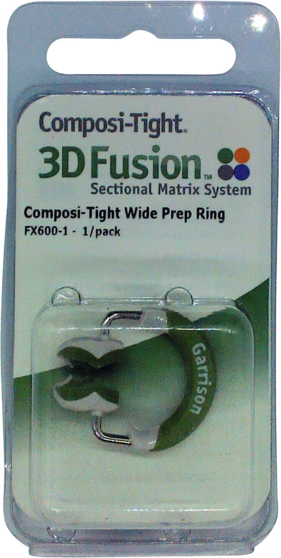 Der neue 3D Fusion Ring für weite Kavitäten. Besonders gut für ausgedehnte, große Kavitäten. Hält selbst bei fehlenden Höckern. Die breiten Silikonfüßchen verhindern das Eindrücken der Matrize in die Kavität.