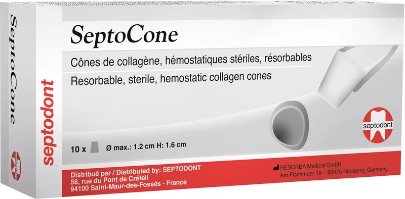 Kollagenkegel equinen Ursprungs, der zur Behandlung von Extraktionsalveolen ohne Knochenverlust eingesetzt wird. Indikationen: Zahnextraktionen, intraorale chirurgische Eingriffe, Biopsie-Entnahmestellen, traumatische Wunden. Bei Patienten mit erhöhtem Blutungsrisiko ist die Verwendung von Fibrinkleber angezeigt.