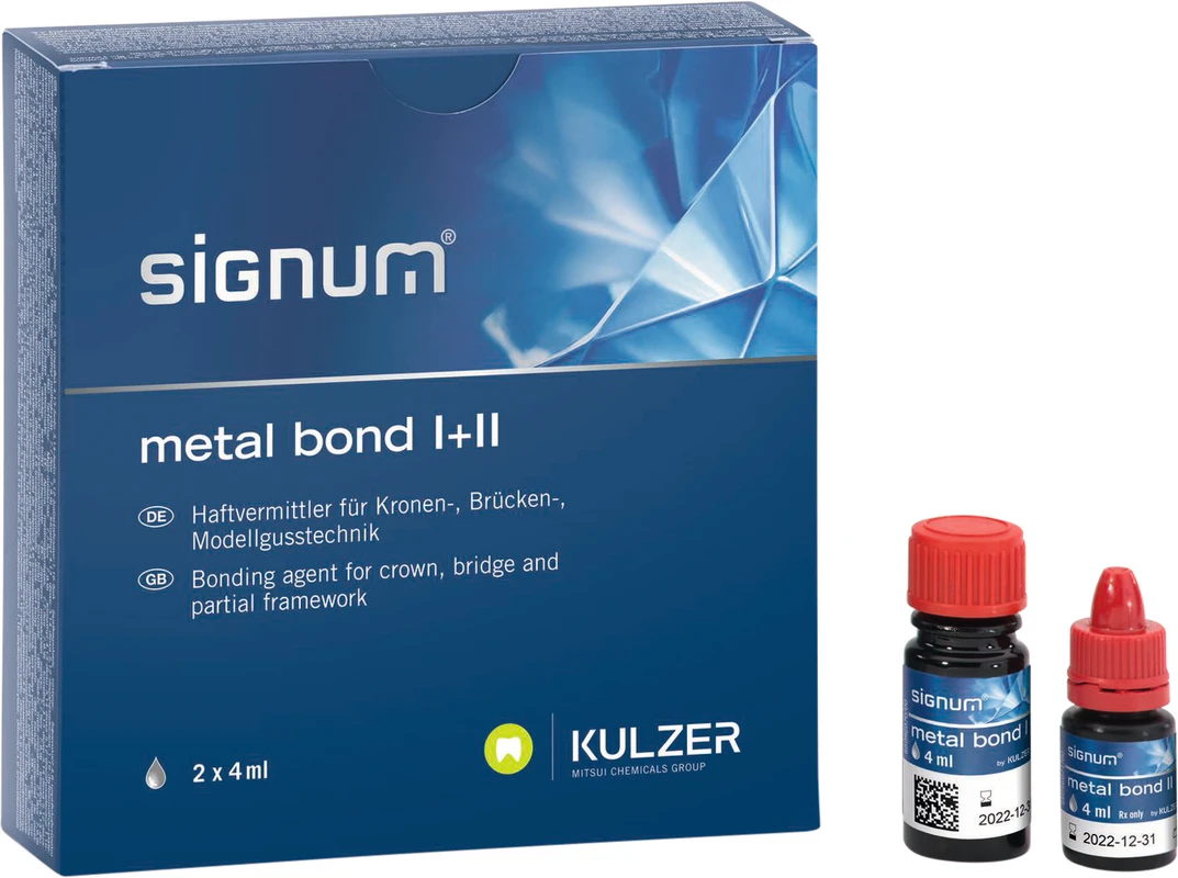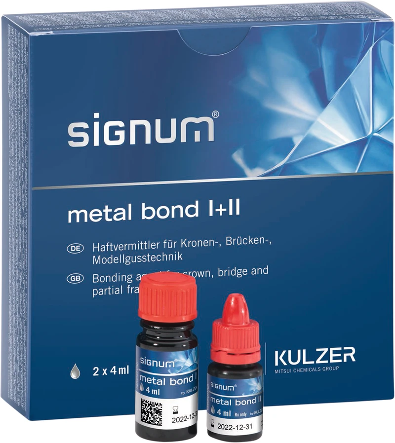 Signum® metal bond sorgt für einen optimalen Haftverbund von Komposit auf Metallgerüstoberflächen. Der Haftvermittler bietet Ihnen höchste Sicherheit und gleichzeitig eine einfache und schnelle Handhabung. Das Kalt-Haftverbundsystem Signum® metal bond erzielt bis zu 300 Prozent höhere Haftwerte von Komposit und Kunststoff auf EM- und NEM-Legierungen sowie auf Titan. Signum® metal bond ist eine sinnvolle Ergänzung zu den anderen Komponenten des Signum Systems und lässt sich zuverlässig mit Signum composite kombinieren. Vorteile
