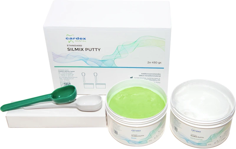 Additionsvernetzendes Silikon (A-Silikon), Zwei-Komponenten-Paste (Paste-Paste) für die Doppelmischtechnik im Mundraum. Silmix Standars ist als temporäres Medizinprodukt (maximale Verweildauer im Mund: 60 Minuten) der Klasse I gemäß EU-Verordnung 2017/745 klassifiziert, unter Anwendung der Regel 5, erster Unterpunkt des Anhangs VIII.