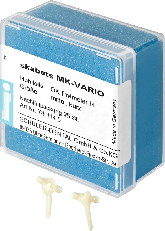 Produktinformationen "skabets MK-VARIO Nachfüllpackung 25 Stück Oberkiefer Prämolar H mittel kurz"